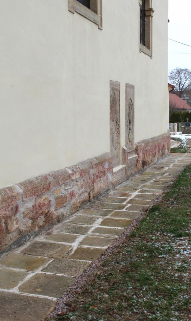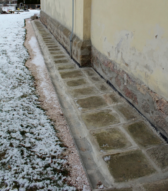 Pískovcový chodník byl během oprav rozebrán, zajistilo se odvodnění pomocí fólie a štěrku a pískovce byly poté umístěny zpět na své místo. Nově vznikly také štěrkové cestičky okolo kostela a k jeho přední bráně.